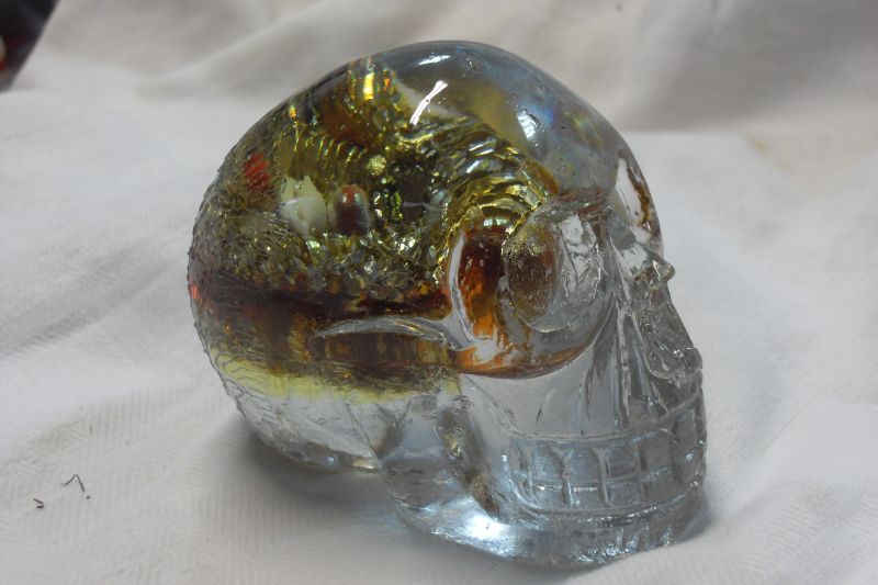 Nous avions voulu ajouter à ce symbole l’énergie du générateur d’Orgone et avons créé ce modèle en résine transparente, qui contient un œuf, réalisé avec une masse d’orgonite des cristaux et autres éléments.