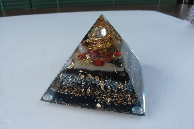 Elle a les mêmes propriétés qu'une HHG ; l'onde de forme de la pyramide augmente l'énergie vibratoire du générateur d'Orgone(1) ; pour les personnes sensibles, le "toucher" de ce générateur d'Orgone est plus dense que celui des HHG. Ne pas poser de pyramide sur soi sauf avec un bon ancrage ou avec le concours d'un professionnel.